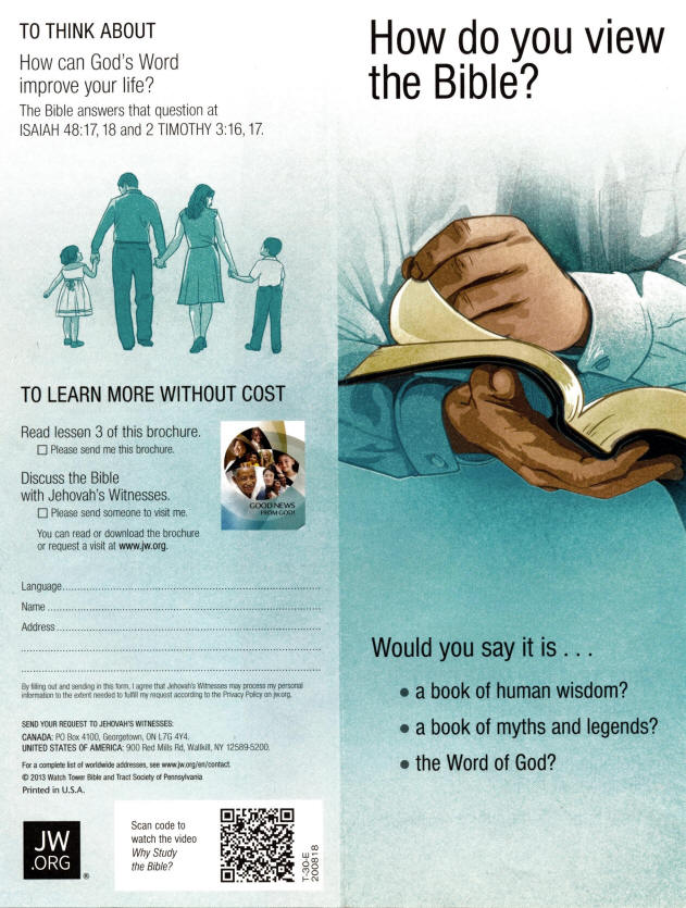 with a copy of their How do you view the bible Pamphlet: