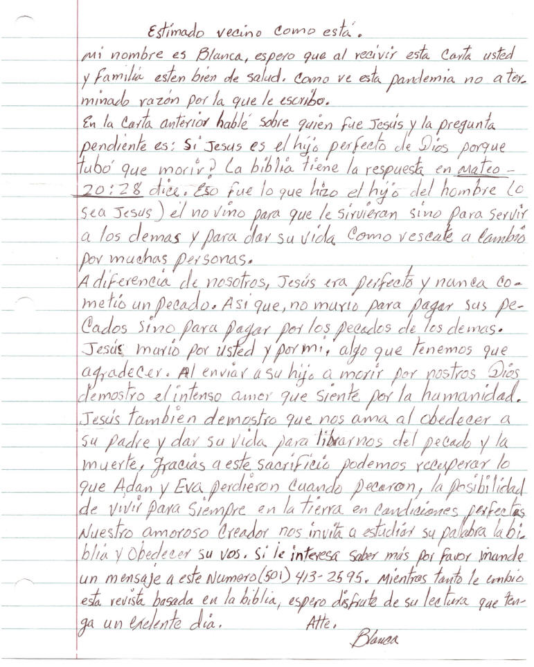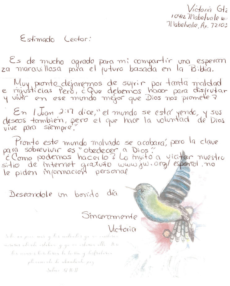 | Fifth mailing from the Southwest Little Rock Congregation of Jehovah's Witnesses, 2022-02-28 | Original letter, again in Spanish: