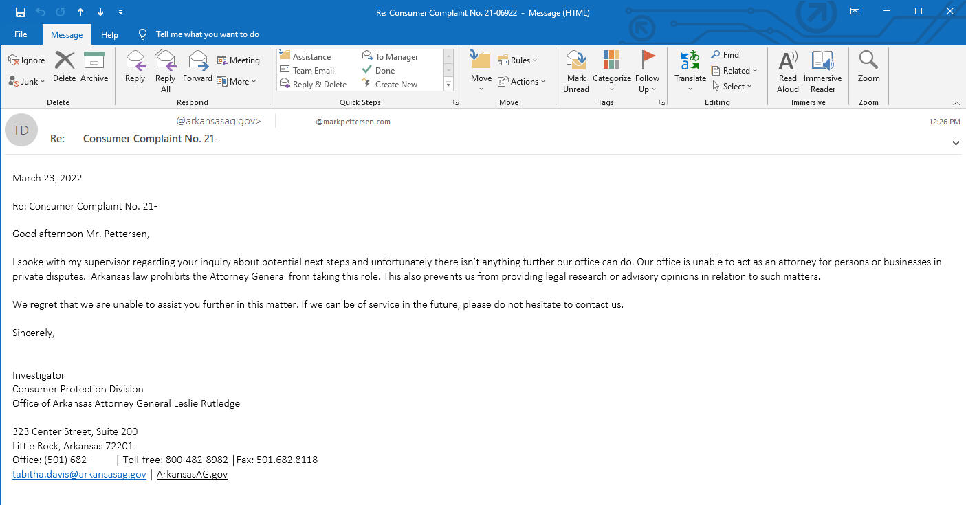 | 2022-03-23, Final response from the Arkansas Attorney General Leslie Rutledge's office |  |